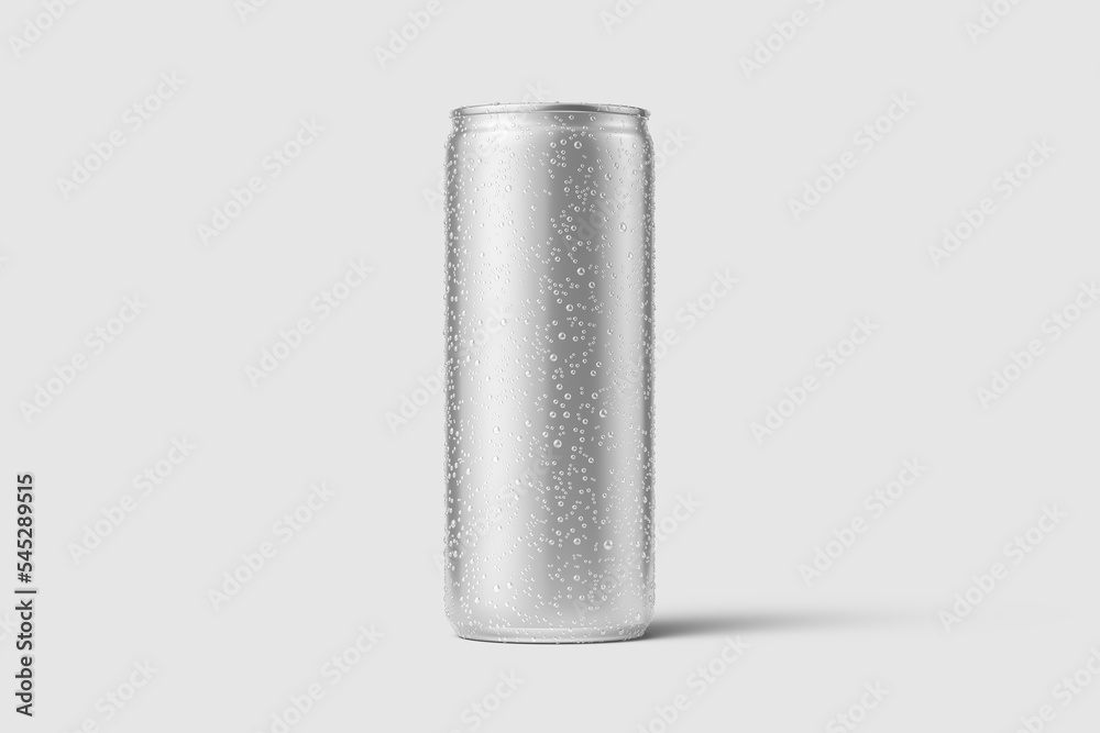 Aluminium drink can 250ml with water drops mockup template isolated on