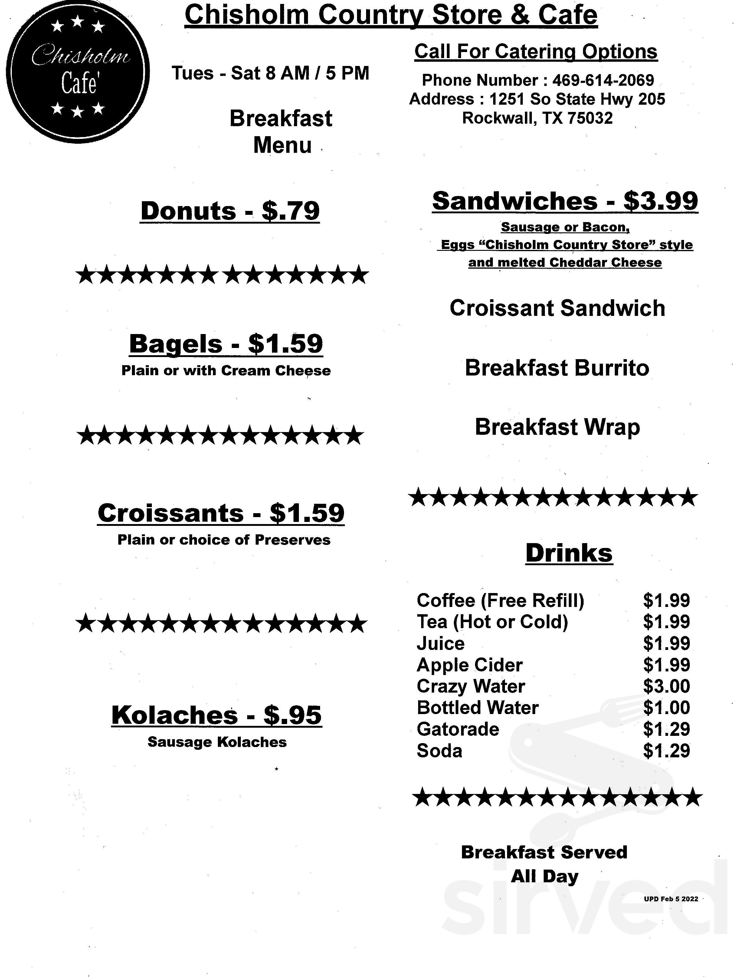 Chisholm Country Store Cafe menu in Rockwall Texas USA