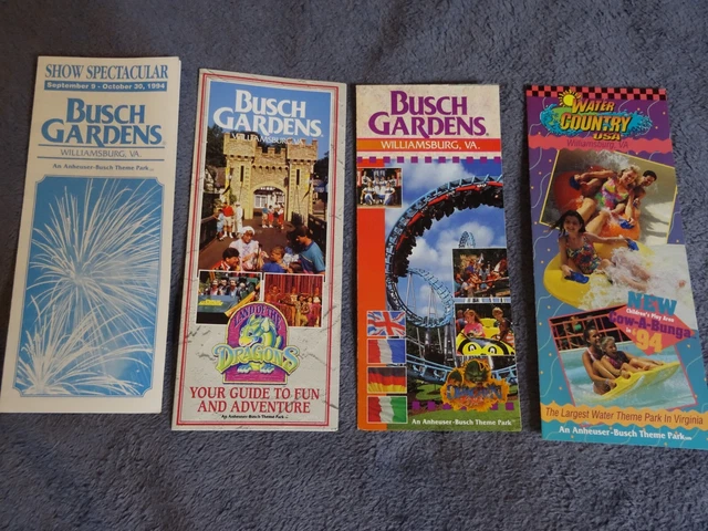 BUSCH GARDENS AND Water Country USA 1994 Park Guide Karte und 1993
