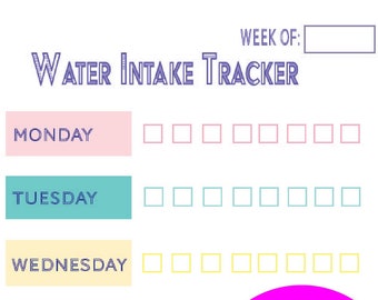 Weekly Water Intake Tracker Printable PDF 5 Colors Available