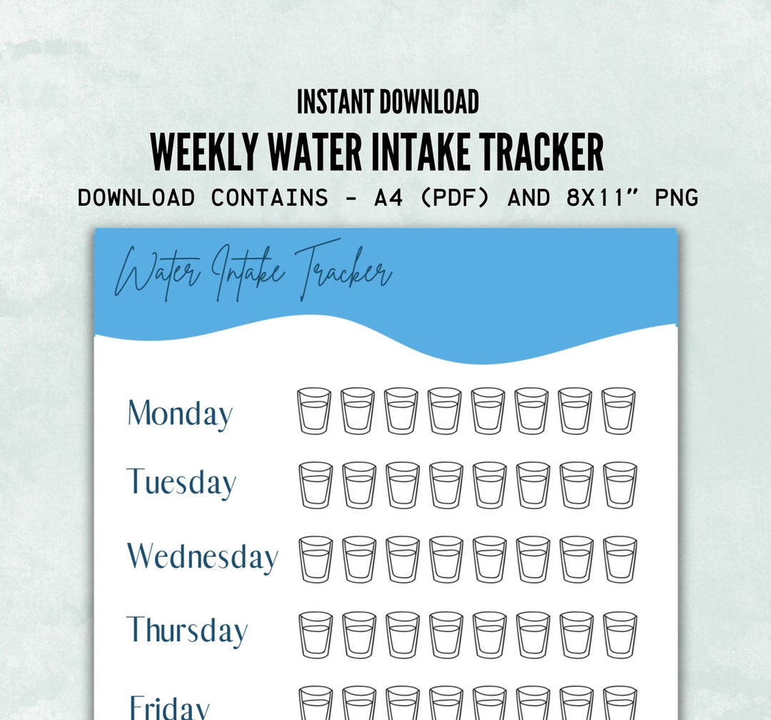 Weekly Water Intake Tracker Printable PDF Digital Download Etsy UK