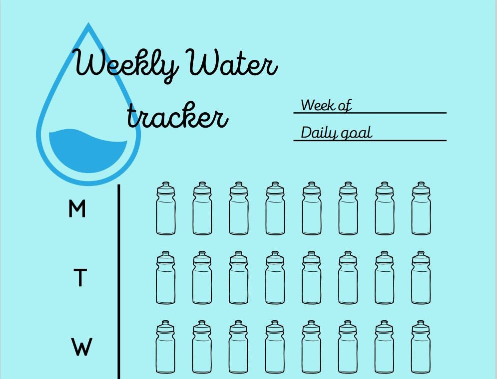 Weekly Water Intake Tracker Printable Weekly Water Tracker Daily