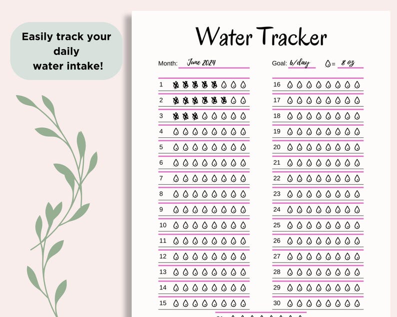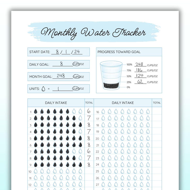 Monthly Water Intake Tracker Printable PDF Digital Download Etsy