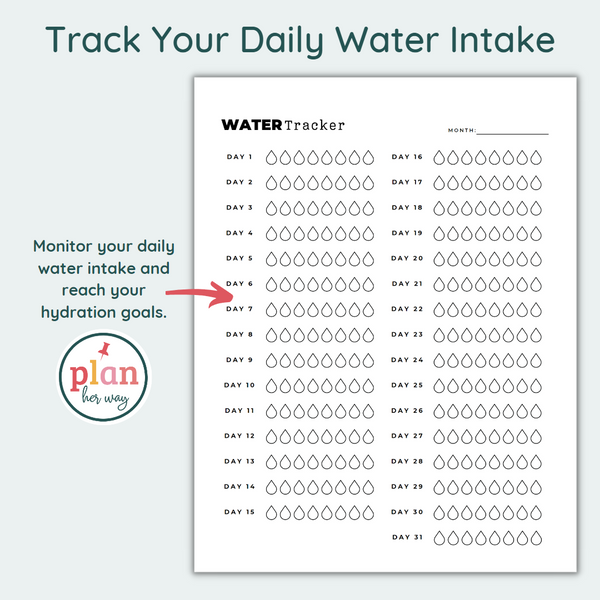 Printable Water Tracker PDF Template Hydration Tracker Plan Her Way