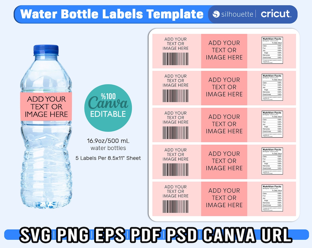 Water Bottle Label Template Canva Editable Water Label Water Bottle