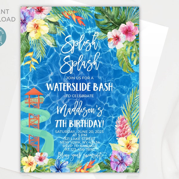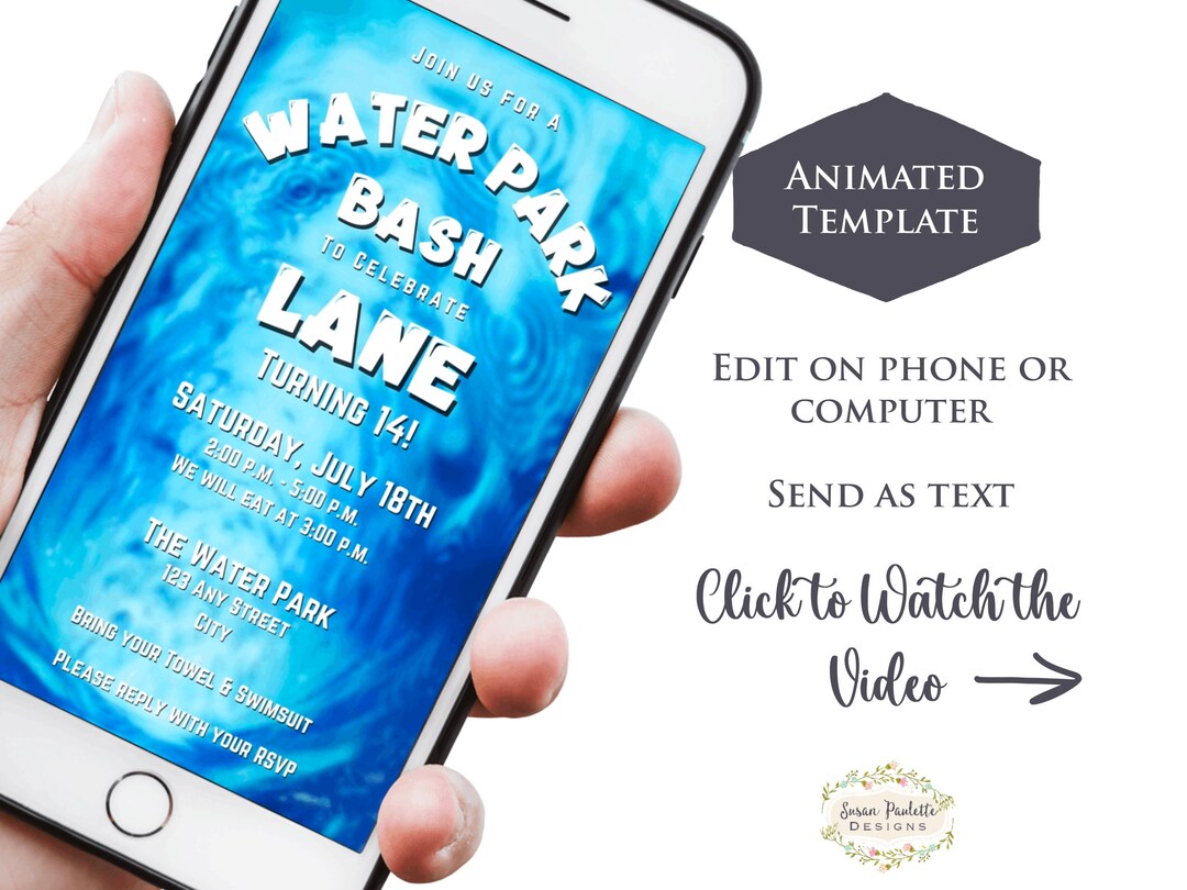 EDITABLE Water Park Invitation Pool Birthday Invitation Water Slide