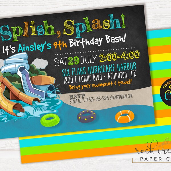 Waterpark Birthday Party Invitation Splish Splash Bash Invitation