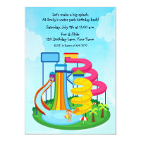 Amusement Birthday Party Invitation for Waterpark Park Fun Theme Park