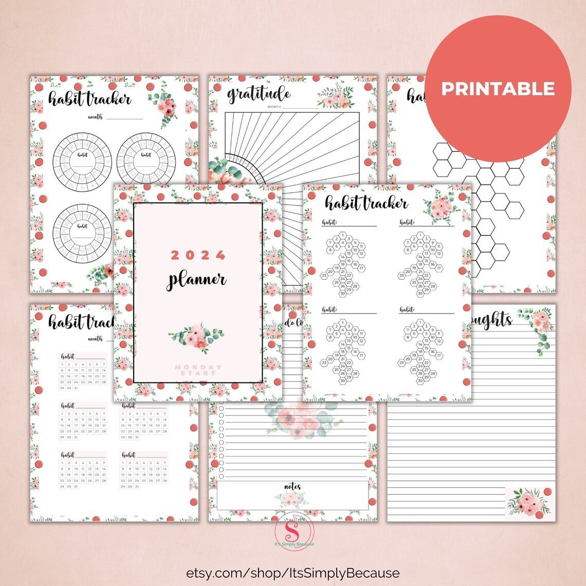 Printable 2024 Calendar Watercolor Floral Printable Etsy