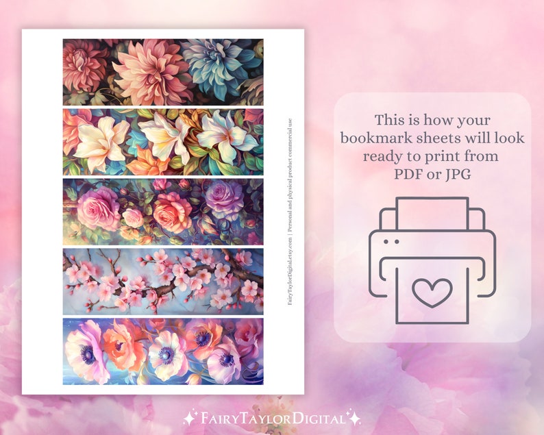 15 Watercolor Floral Printable Bookmarks Digital Download JPG Bookmark