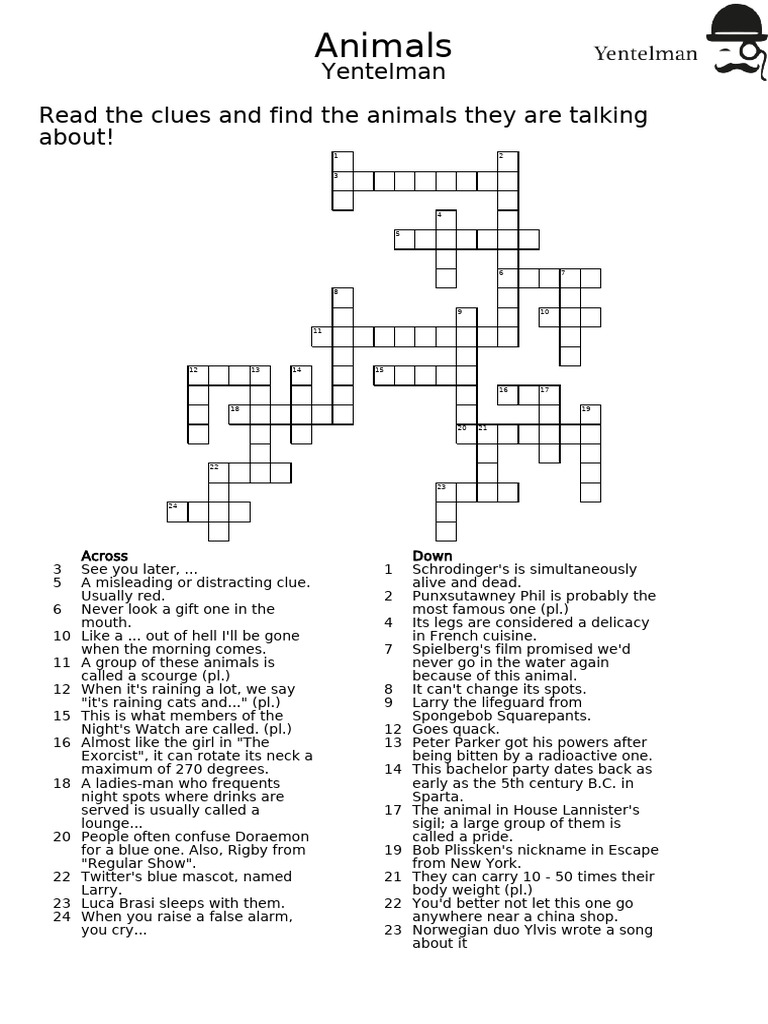Animals Crossword Watermark PDF