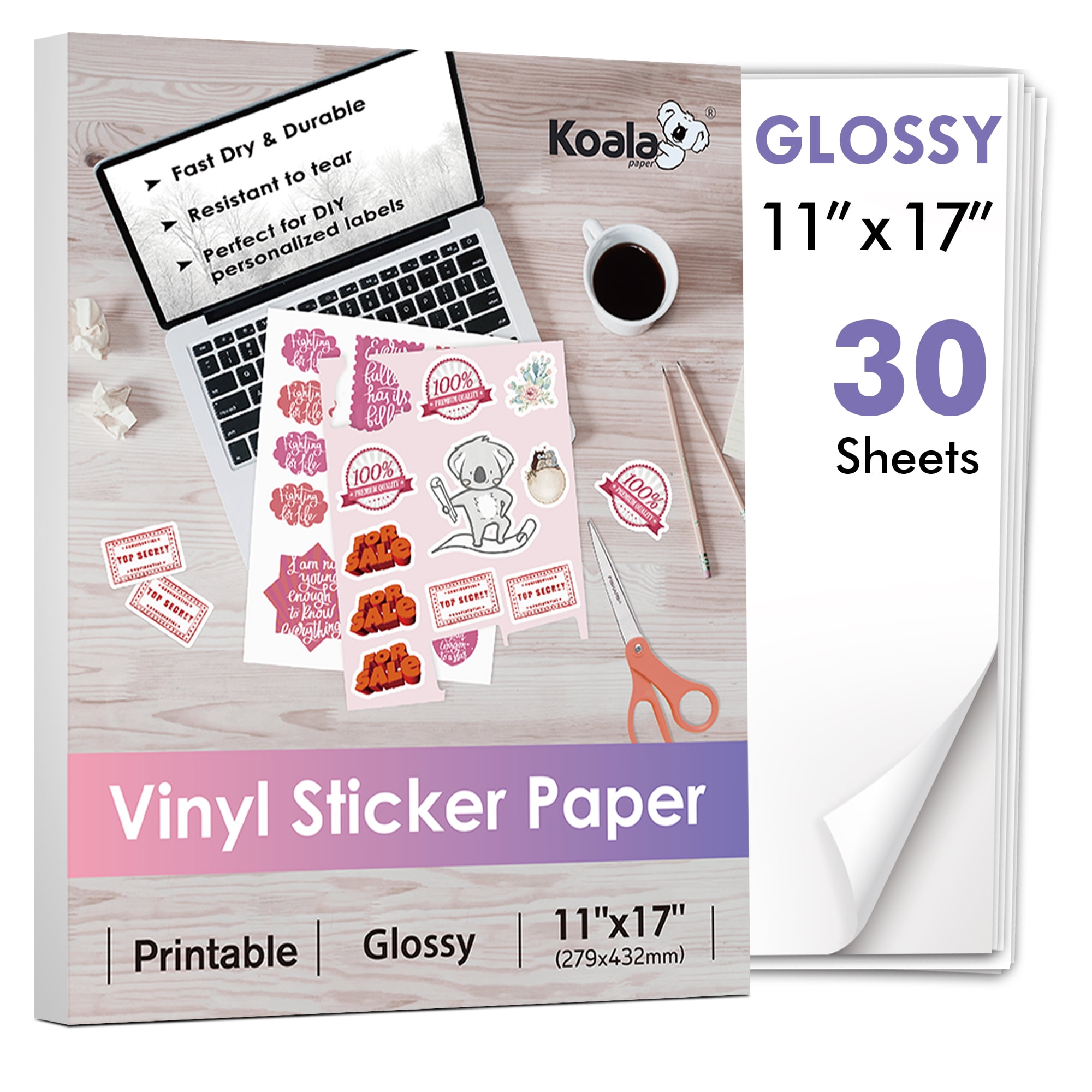 Koala Printable Vinyl Sticker Paper 11x17 Inches Matte White Waterproof