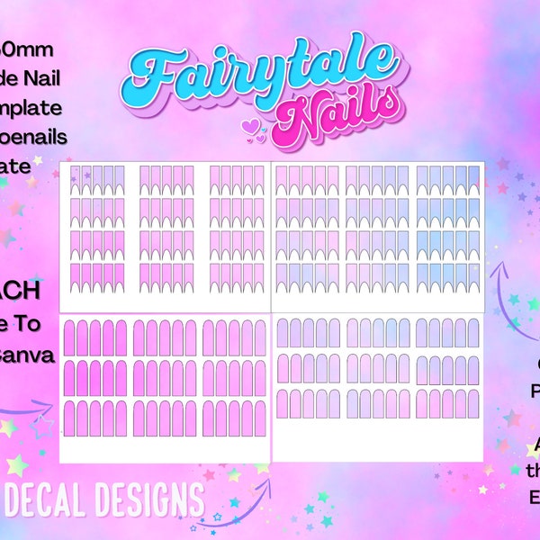 Editable CANVA Waterslide DIY Nail Decal Design Templates for Etsy