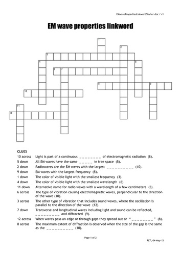 Physics Wave Crossword Puzzle Answer Key 570c7 61633b33 PDF Waves