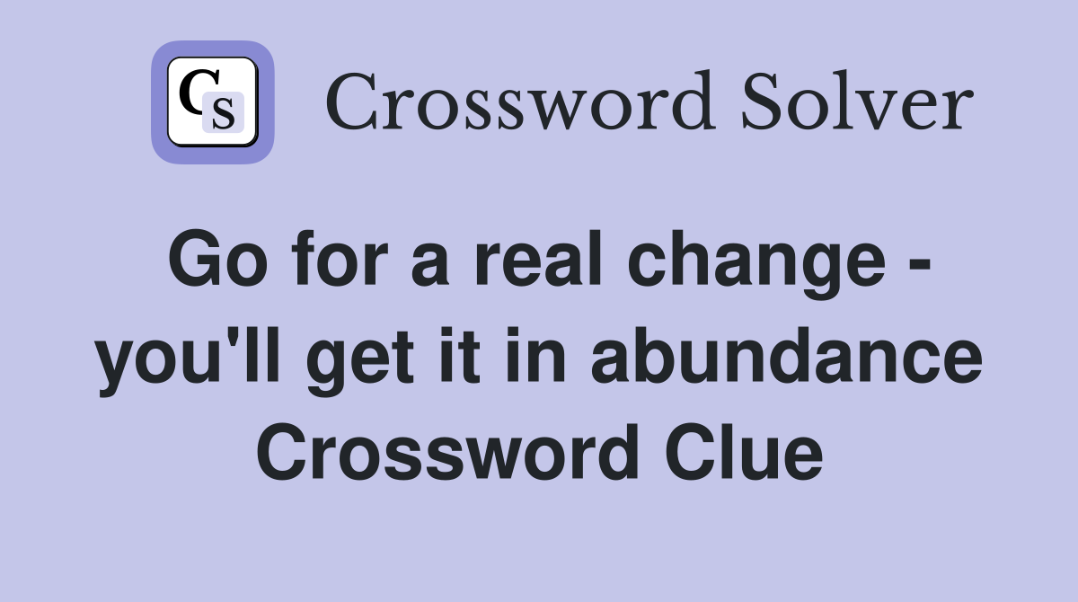 Go for a real change you #39 ll get it in abundance Crossword Clue