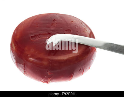 Sliced head of Edam cheese covered with a red wax coating Stock Photo