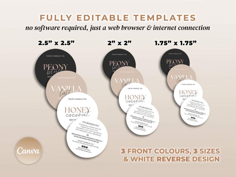 Round Wax Melt Label Template Editable Canva Custom Wax Melt Label