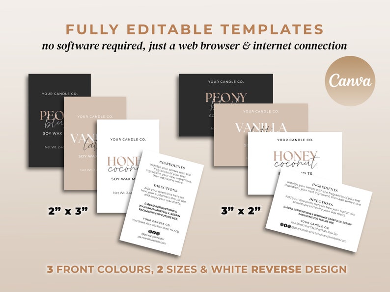 Editable Wax Melt Label Template (3 label sizes 2 design)