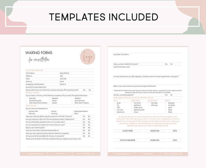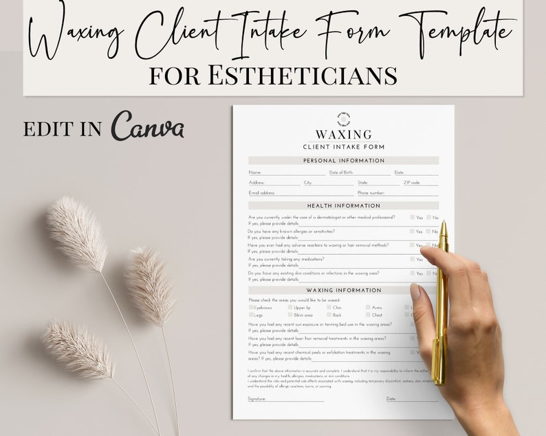 Editable Waxing Client Forms Esthetician Forms Canva Template Waxing