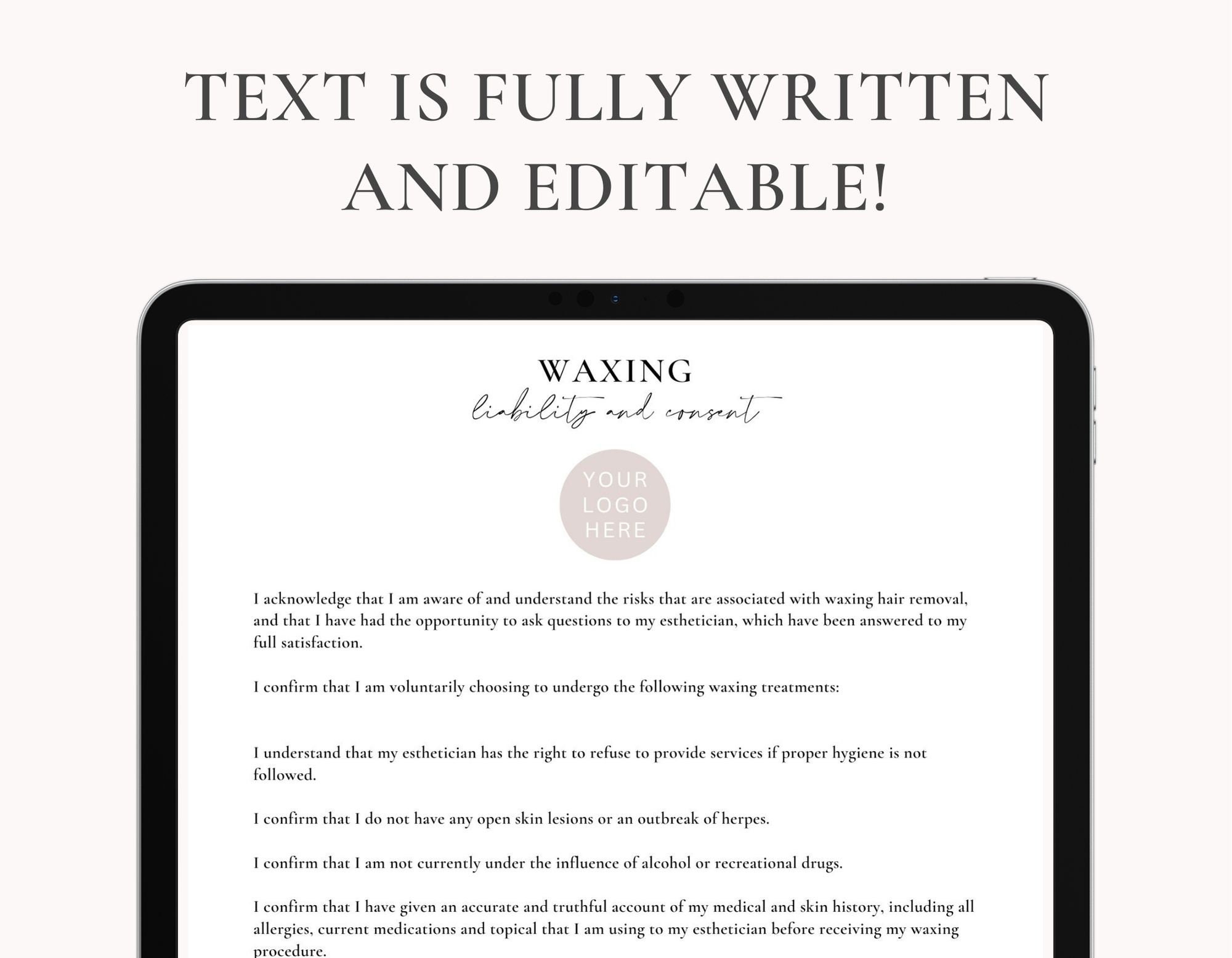 Waxing Consent Form Editable Esthetician Template for Body Waxing