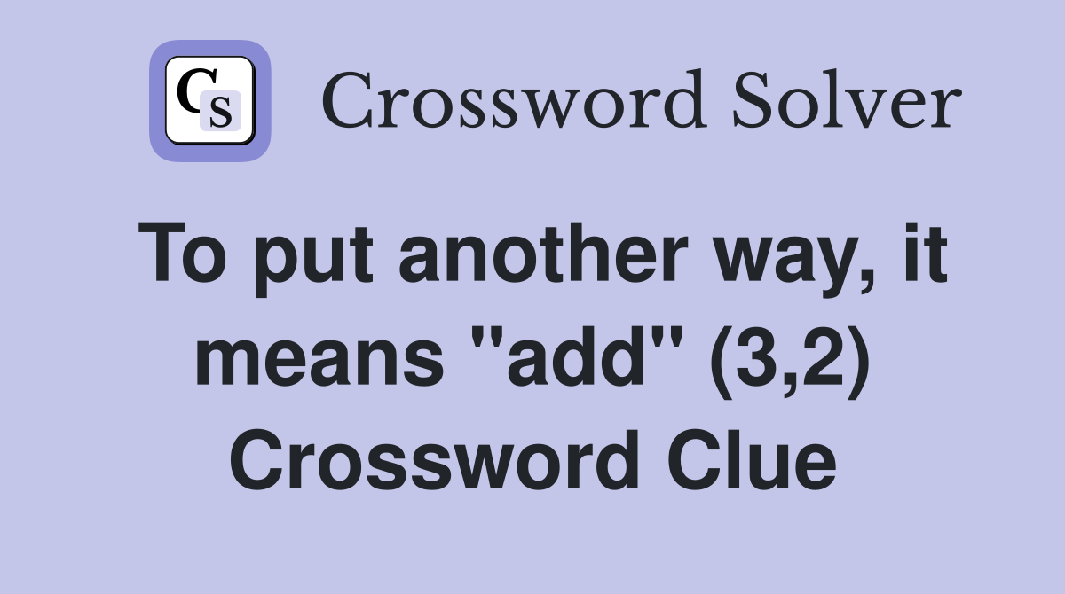 To put another way it means quot add quot (3 2) Crossword Clue Answers