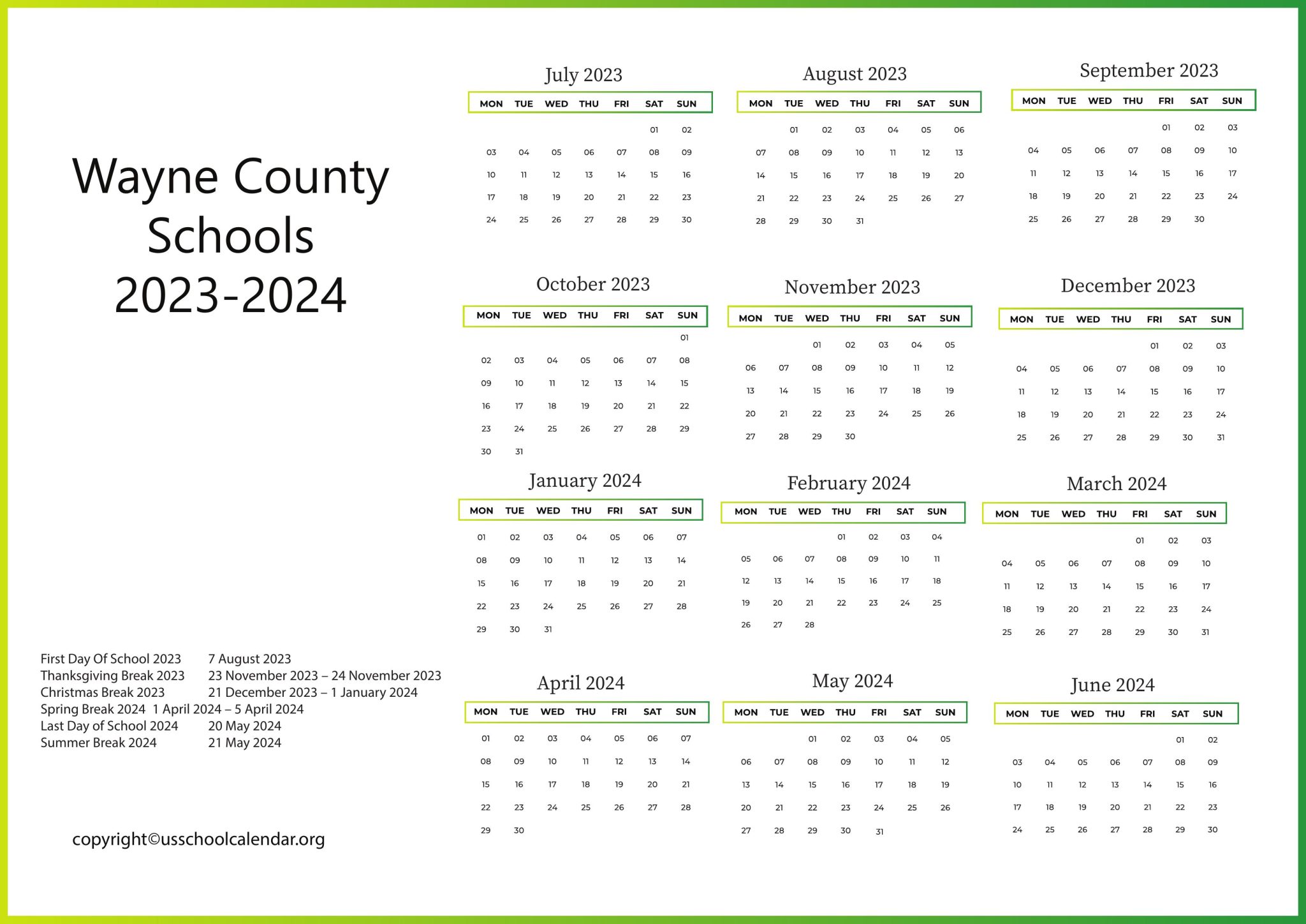 Wayne County Public Schools Calendar 2023 2024 in PDF School Calendar