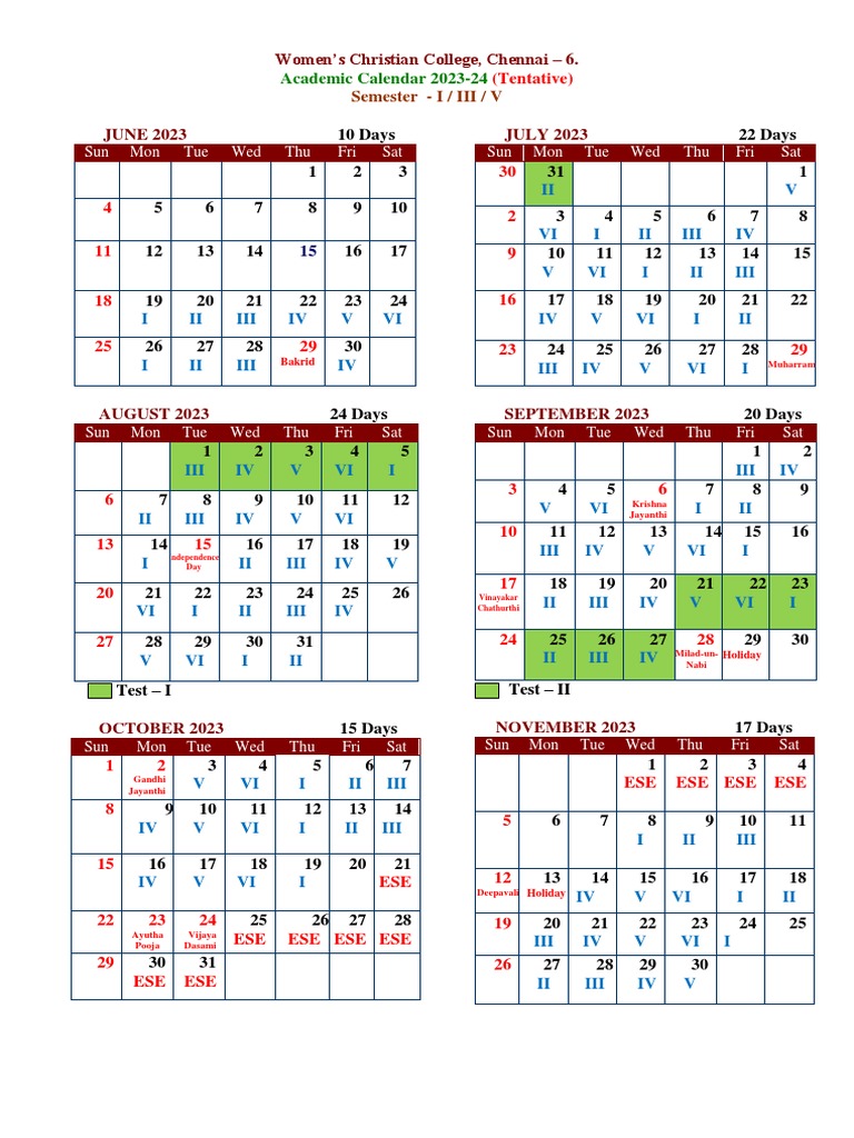 WCC Chennai Academic Calendar 2023 24 PDF