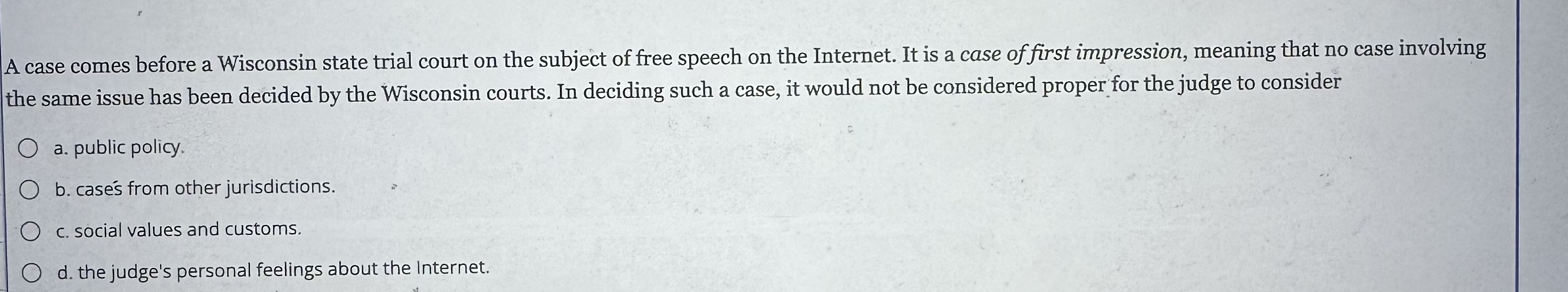 Solved A case comes before a Wisconsin state trial court on Chegg com