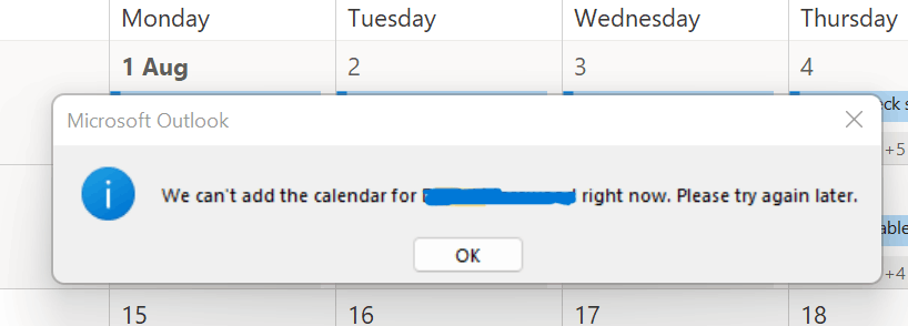 We Cant Add The Calendar Right Now Outlook