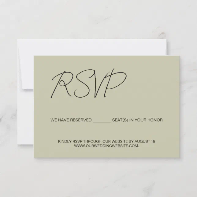 We have reserved seats for you Sage green RSVP Card Zazzle