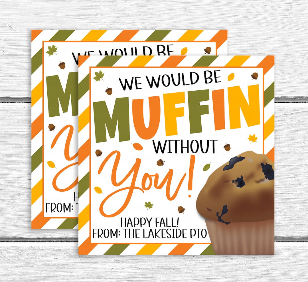 Fall Muffin Without You Appreciation Gift Tags Autumn Theme Thank You