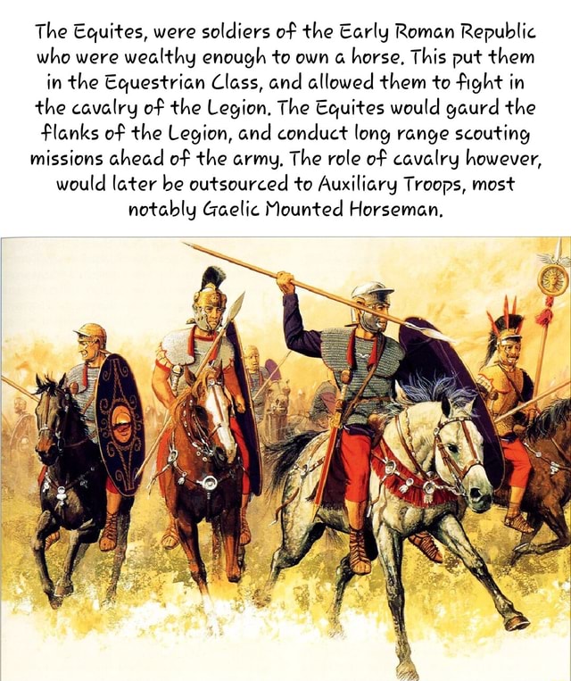 The Equites were soldiers of the Early Roman Republic who were wealthy