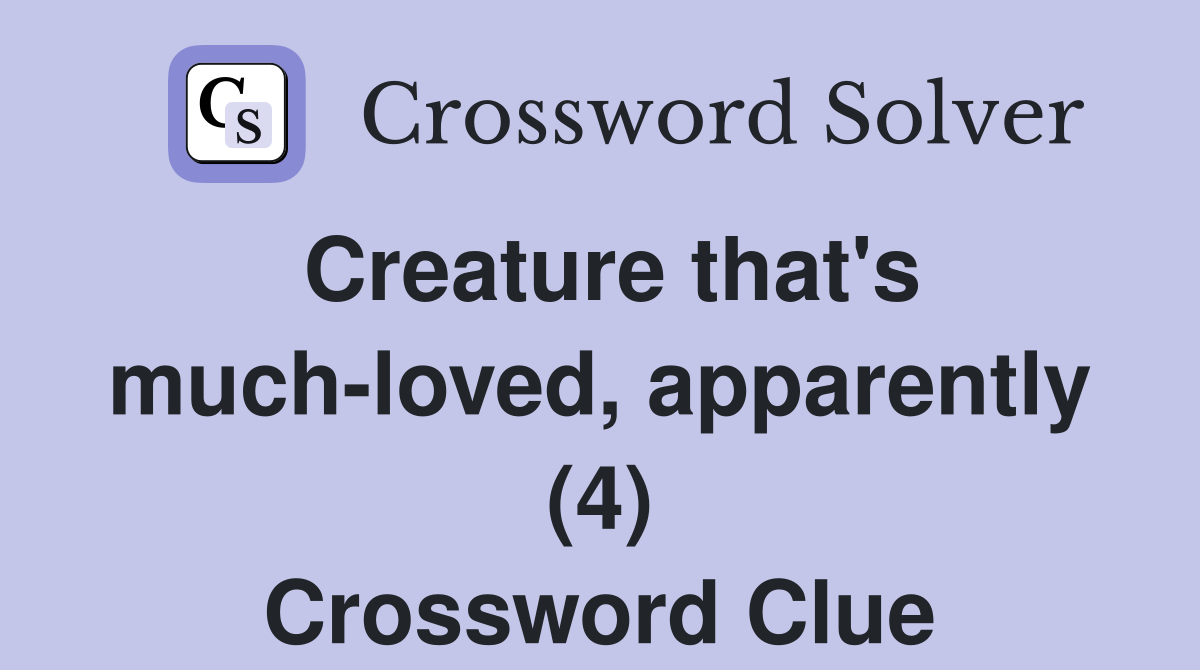 Creature that #39 s much loved apparently (4) Crossword Clue Answers