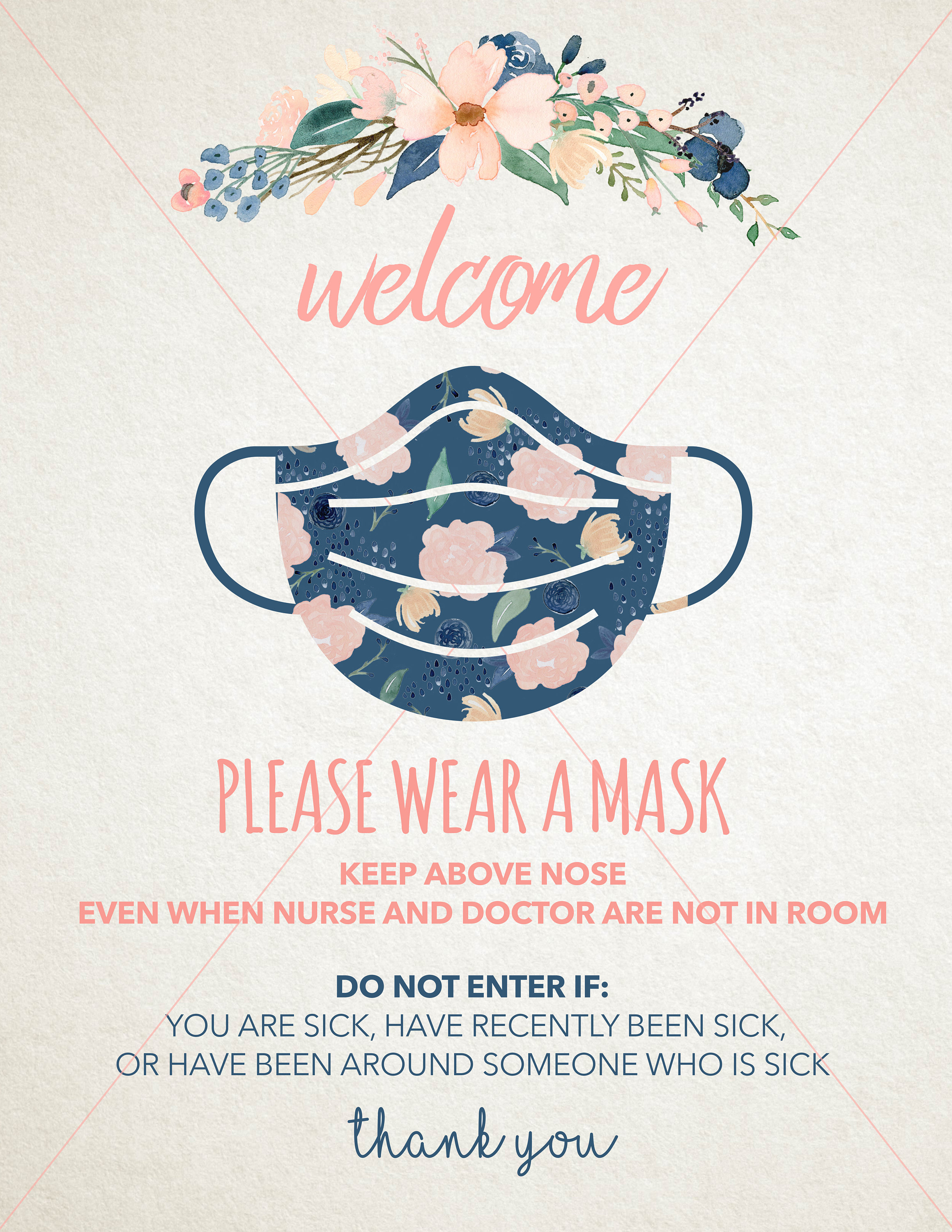 Wear A Mask Sign Printable INSTANT DOWNLOAD Floral Please Wear A
