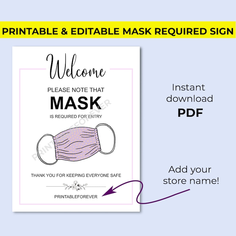 Wear A Mask Sign Printable INSTANT DOWNLOAD Please Wear A Mask