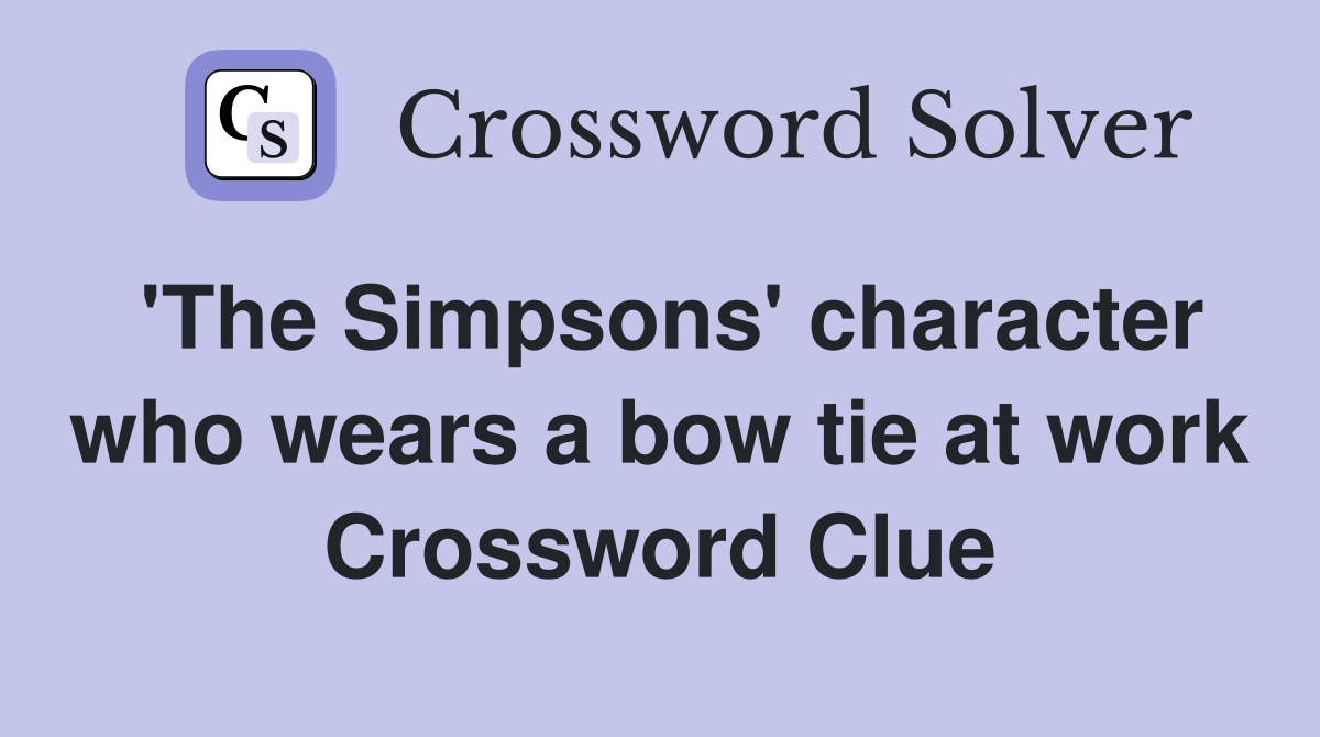 #39 The Simpsons #39 character who wears a bow tie at work Crossword Clue