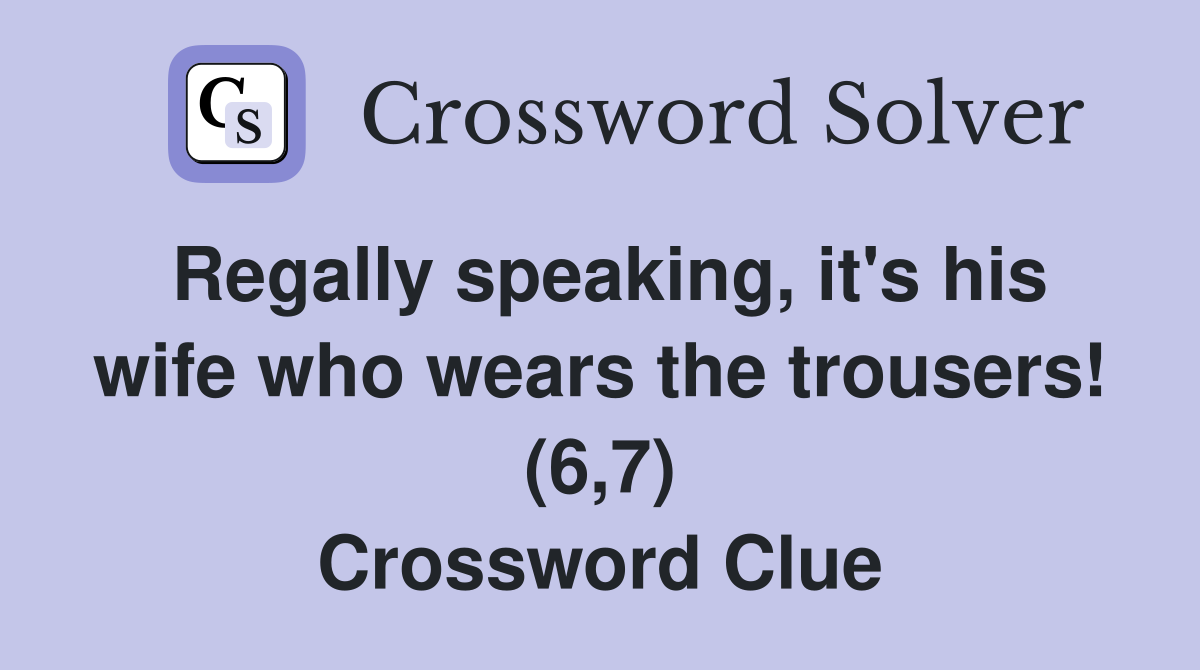Regally speaking it #39 s his wife who wears the trousers (6 7