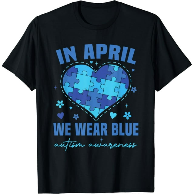 In April We Wear Blue Autism Awareness Month Puzzle T Shirt Walmart com