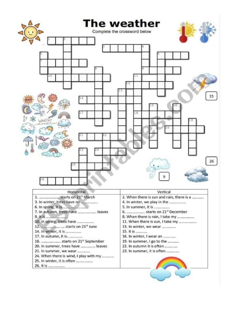 THE WEATHER CROSSWORD 1 ESL worksheet by cerix64 Worksheets Library