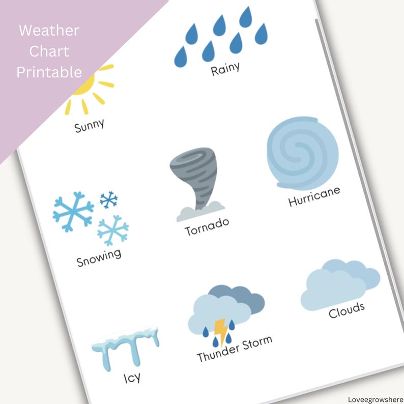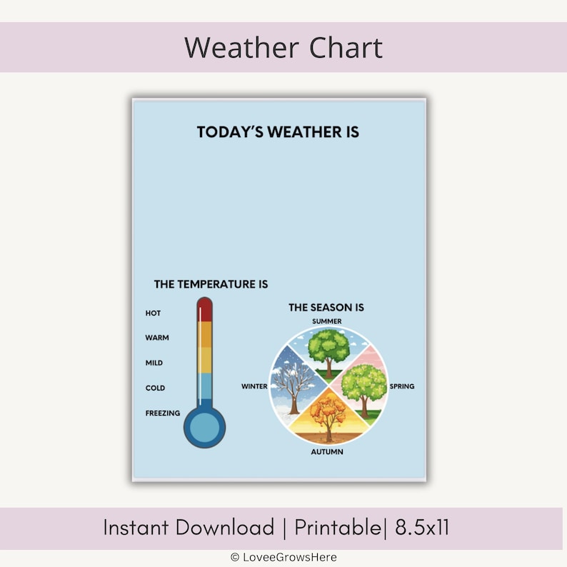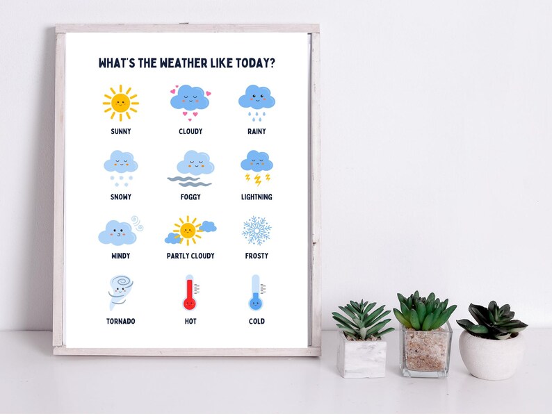 Weather Chart for Kids Printable Classroom Poster Preschool Homeschool