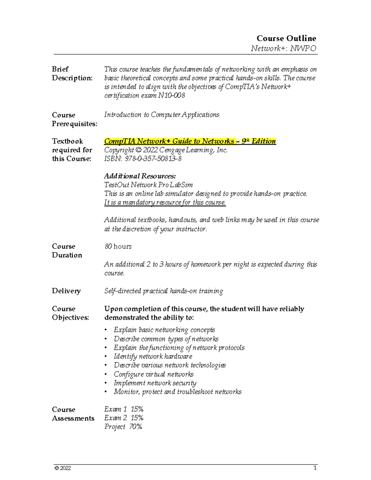 NWPO v5 0 Course Outline 2022 0310 Network : NWPO Brief Description