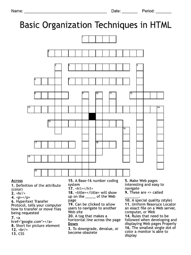 Crossword Puzzles for Web Development ANSWER KEY INCLUDED Crossword