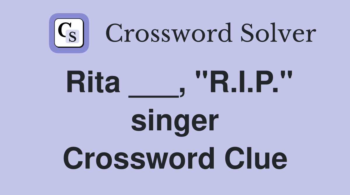 Rita quot R I P quot singer Crossword Clue Answers Crossword Solver