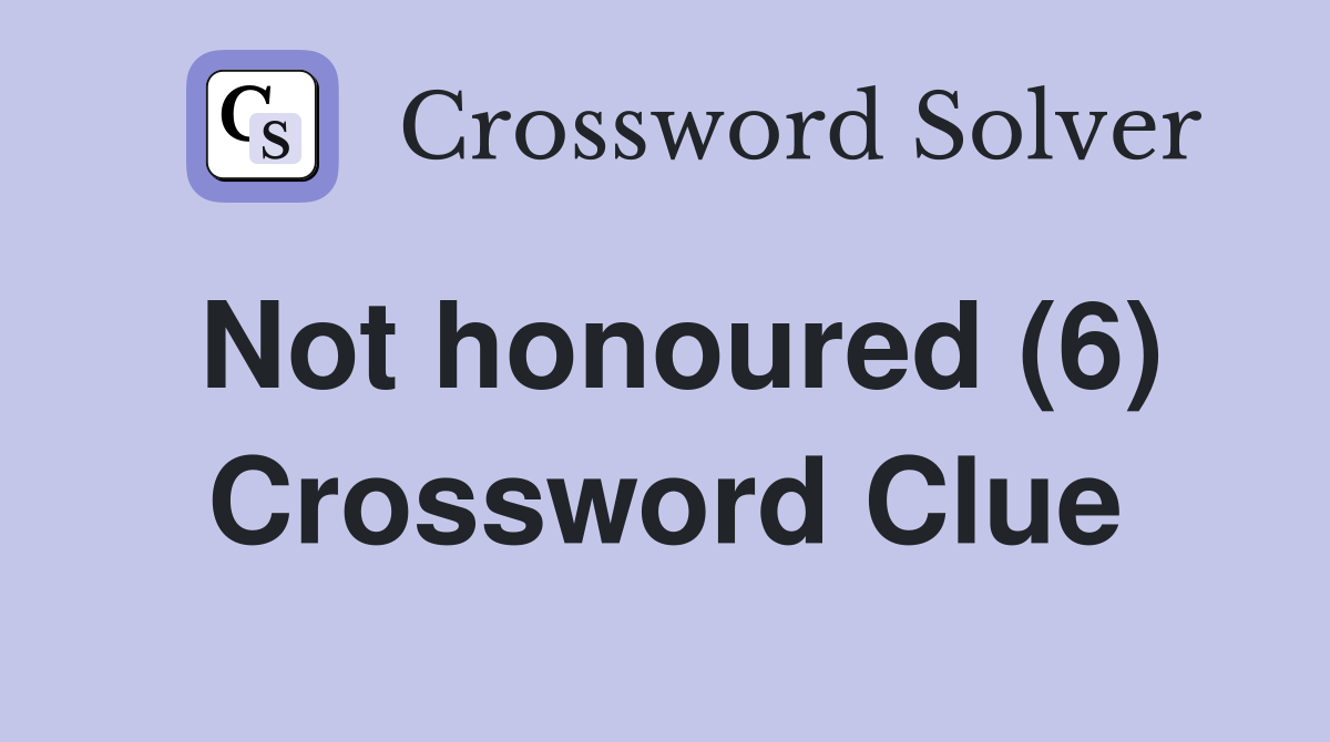 Not honoured (6) Crossword Clue Answers Crossword Solver