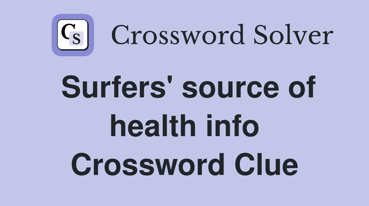 Surfers source of health info Crossword Clue Answers Crossword Solver