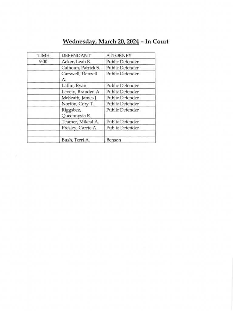 Court Schedule for March 20 2024 PDF Social Science