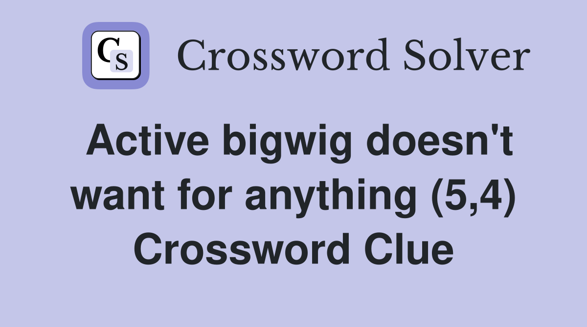 Active bigwig doesn t want for anything (5 4) Crossword Clue Answers