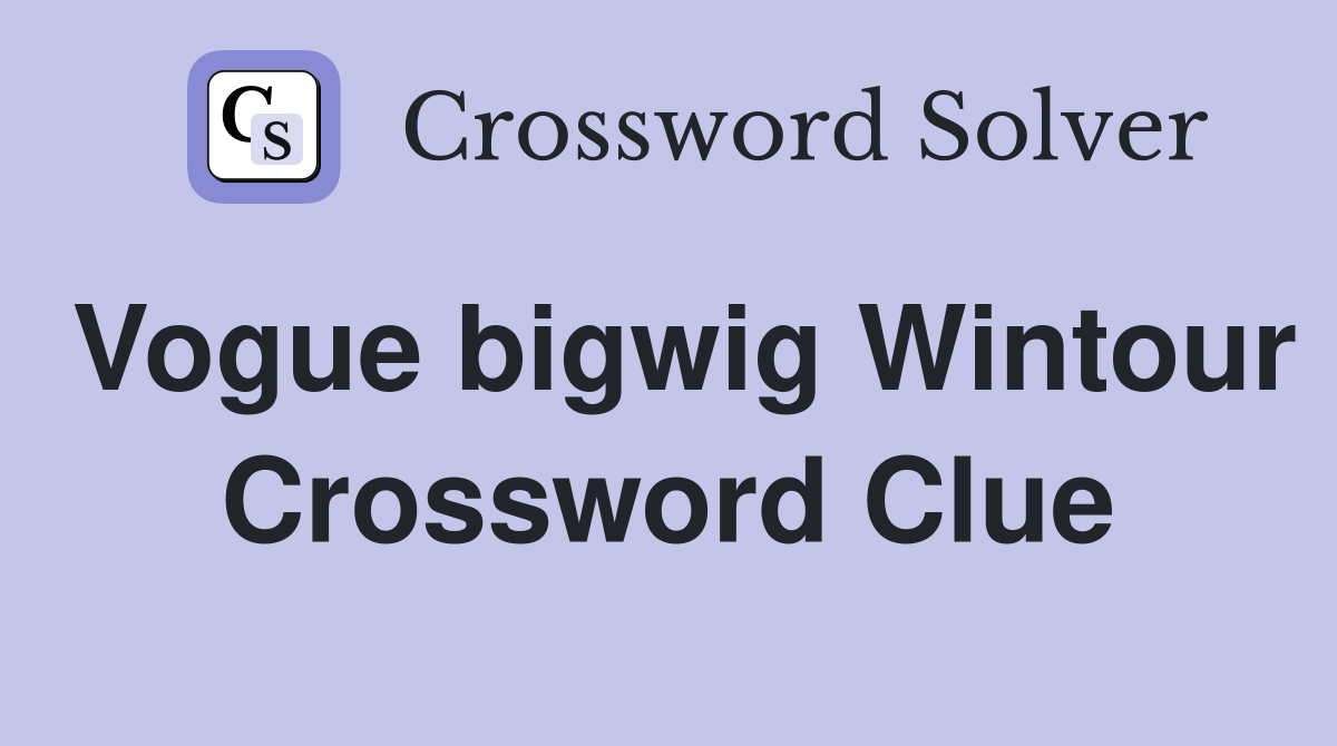 Vogue bigwig Wintour Crossword Clue Answers Crossword Solver