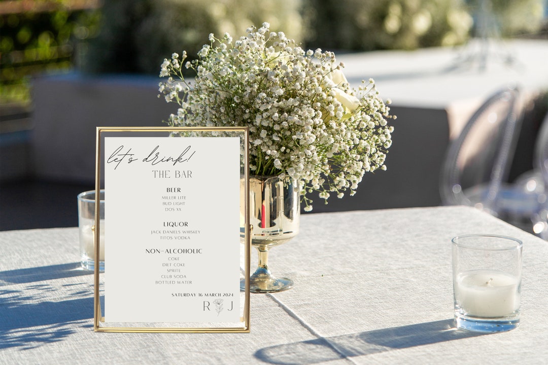 Minimalist Wedding Bar Sign Template Wedding Bar Sign Template