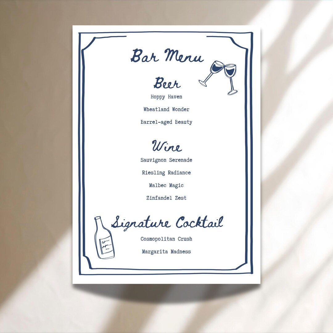 Minimalist Wedding Bar Menu Template Wedding Bar Sign Template Wedding
